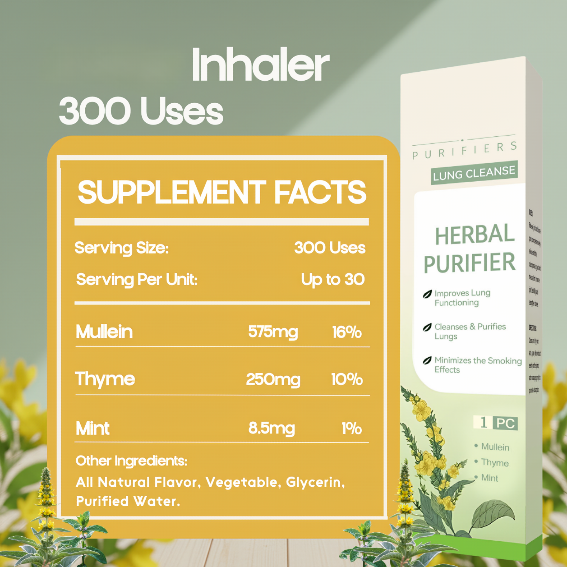 Experience a refreshing herbal blend of mullein, thyme, and mint, designed to help you feel your lungs lighter, calmer, and cleaner with every inhale.